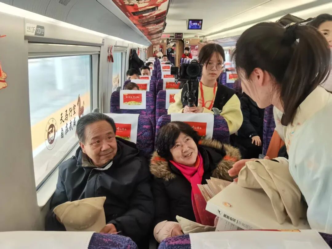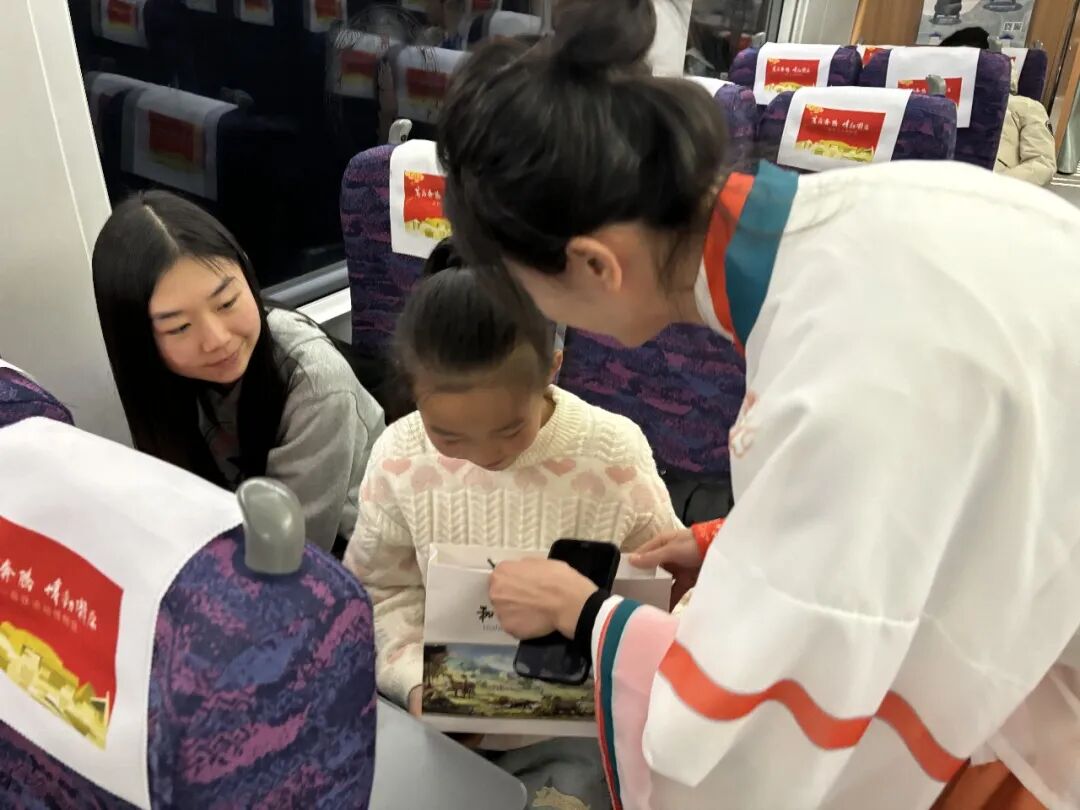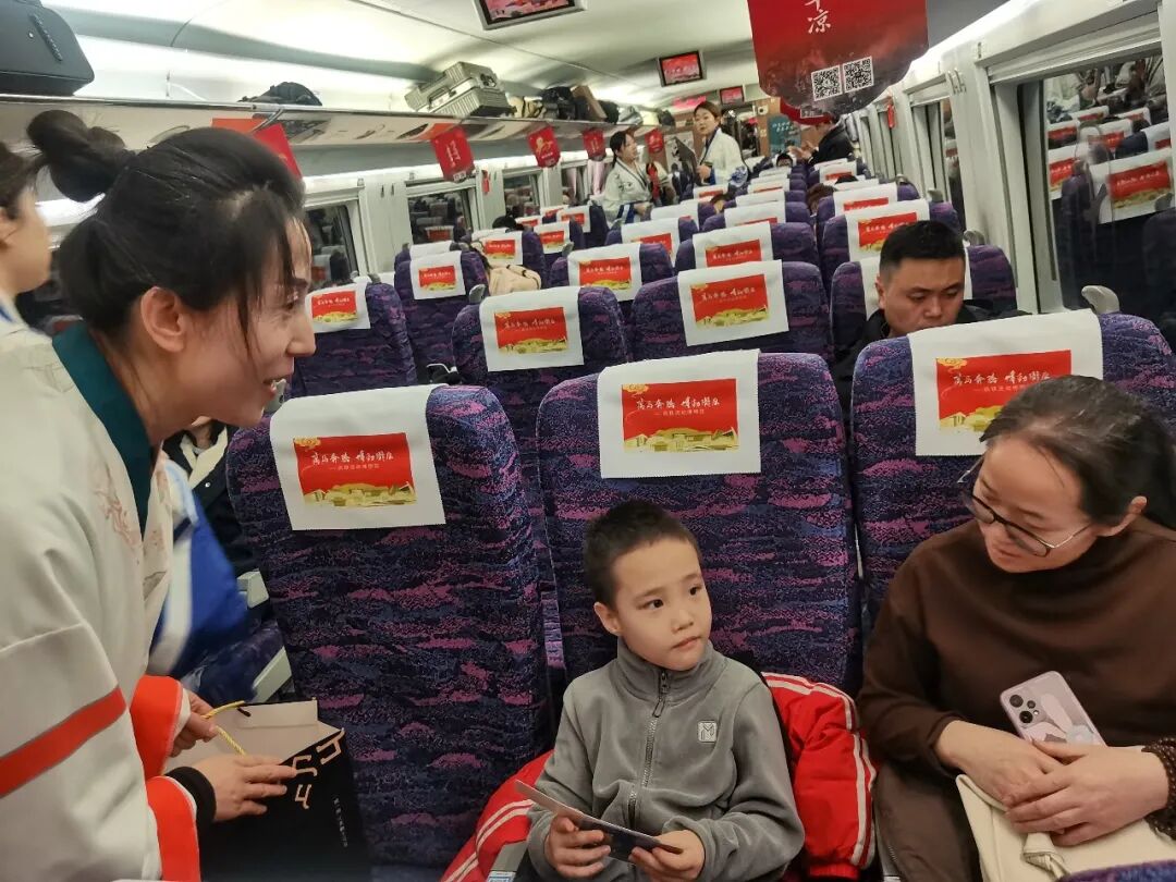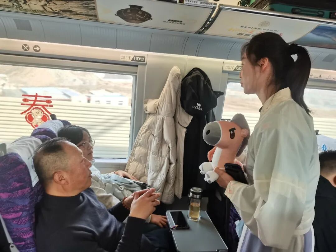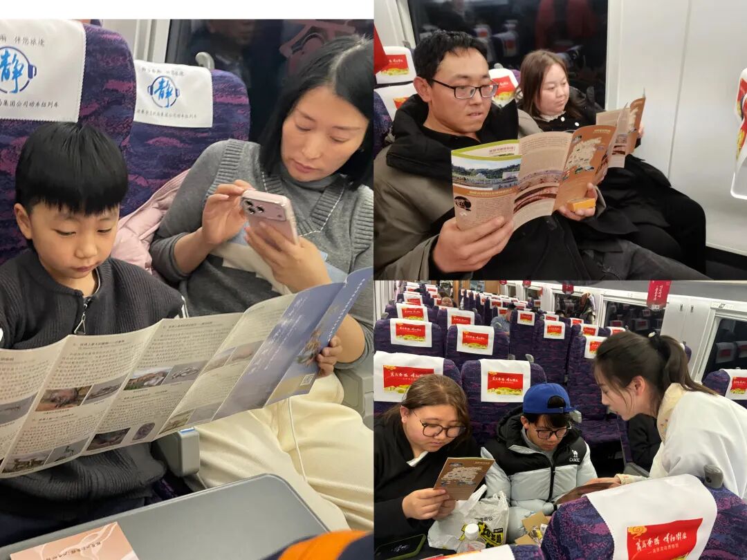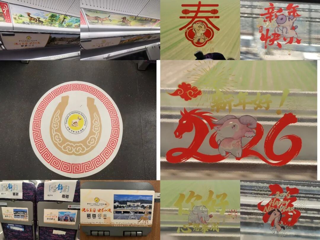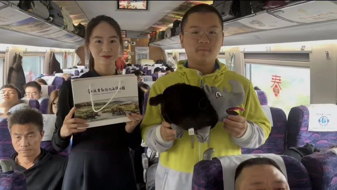 2月9日10时38分,由甘肃省文化和旅游厅、甘肃省文物局和中国铁路兰州局集团有限公司首次联合打造的“高铁流动博物馆”主题文化列车——G848次,从兰州西站启程,带着陇原大地的厚重文化底蕴,向广州南站奔赴而去,在2600多公里的旅途上,铺展了陇原文脉传播之旅的时代长卷。 作为参与单位之一,我馆高度重视此次跨界合作,提前精心策划筹备。围绕当地古动物化石特色文化元素,量身设计制作了主题车厢地贴,以和政古动物“十项世界之最”的IP卡通形象设计制作了车门、车窗的特色窗花,在行李架、小桌板上设计制作了主题宣传海报等视觉物料,全面装点高铁车厢,营造出浓厚且富有特色的文化氛围与喜庆气息。 活动期间,我馆专业讲解员登上高铁列车,面向旅客开展了和政古动物化石资源的科普宣传,以巨犀动物群、铲齿象动物群、三趾马动物群、真马动物群四大化石群为脉络,系统介绍和政作为欧亚大陆最大晚新生代哺乳动物化石产地的独特地位,重点讲解了和政古动物化石博物馆十项世界之最的精品馆藏。通过图文展示、趣味问答等形式,深入浅出普及了古生物知识,让旅客在旅途中读懂“化石王国”的科学价值与文化魅力。同时,向旅客赠送了古动物化石主题文创产品,把千万年前的古生物文明转化为可触摸、可带走的文化记忆,让甘肃和政独特的自然遗产与历史文化,随着飞驰列车传遍千里旅途,让春运归途更添文化温度。 从丝路驼铃到高铁飞驰,从马蹄印迹到千里铁道,从古驿亭台到现代车窗,此次合作以全新形式实现文化传承方式的创新升级。文脉的延续不再依靠信使与驼队,而是依托高铁飞驰的速度与覆盖面。让甘肃久远的地质历史,陇原悠久的历史文化随着列车穿行山河,在流动中抵达更广阔的天地。 “高铁流动博物馆”主题文化列车活动还将继续,我馆将与兄弟博物馆一起以飞驰的列车为移动宣传阵地,持续把和政古动物化石文化、史前文明故事、地方特色遗产带上春运旅途,通过常态化科普宣讲、互动体验、文创展示等形式,让更多旅客近距离认识和政、了解化石、爱上甘肃,不断扩大“化石王国”的知名度与影响力,让文化传播一路随行,让史前文明走进千家万户,为讲好甘肃、传播甘肃声音注入博物馆力量。